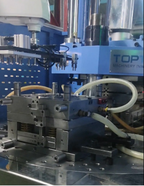 Fabricación de piezas en máquina vertical de 120 toneladas con "insert molding".